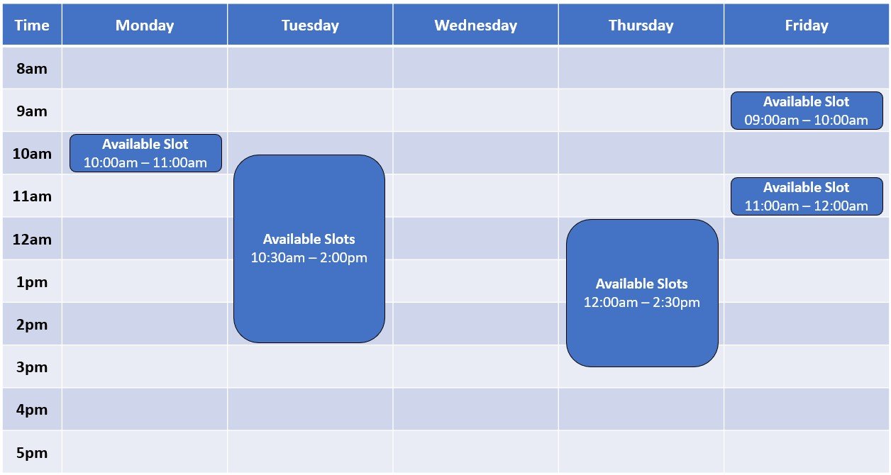 Current Available Weekly Slots.